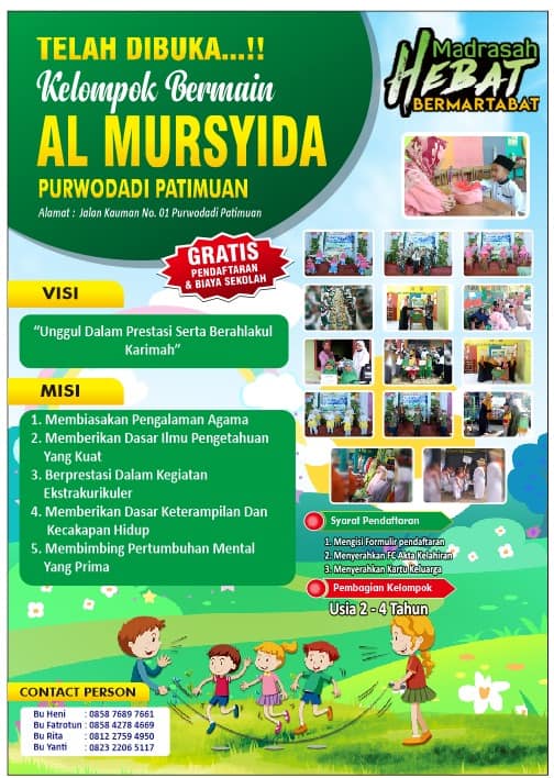 RA Al Mursyida menggelar acara pelepasan murid Tahun Ajaran 2023/2024 dengan penuh khidmat dan meriah. Kegiatan ini menjadi momen istimewa bagi para peserta didik yang telah menyelesaikan masa belajarnya, sekaligus sebagai bentuk apresiasi atas usaha dan prestasi yang diraih. Dalam acara tersebut, turut hadir para guru, orang tua, serta tamu undangan yang memberikan dukungan dan doa terbaik untuk kelanjutan pendidikan anak-anak. Suasana haru dan bahagia menyatu, menandai langkah baru bagi para lulusan menuju jenjang pendidikan berikutnya.